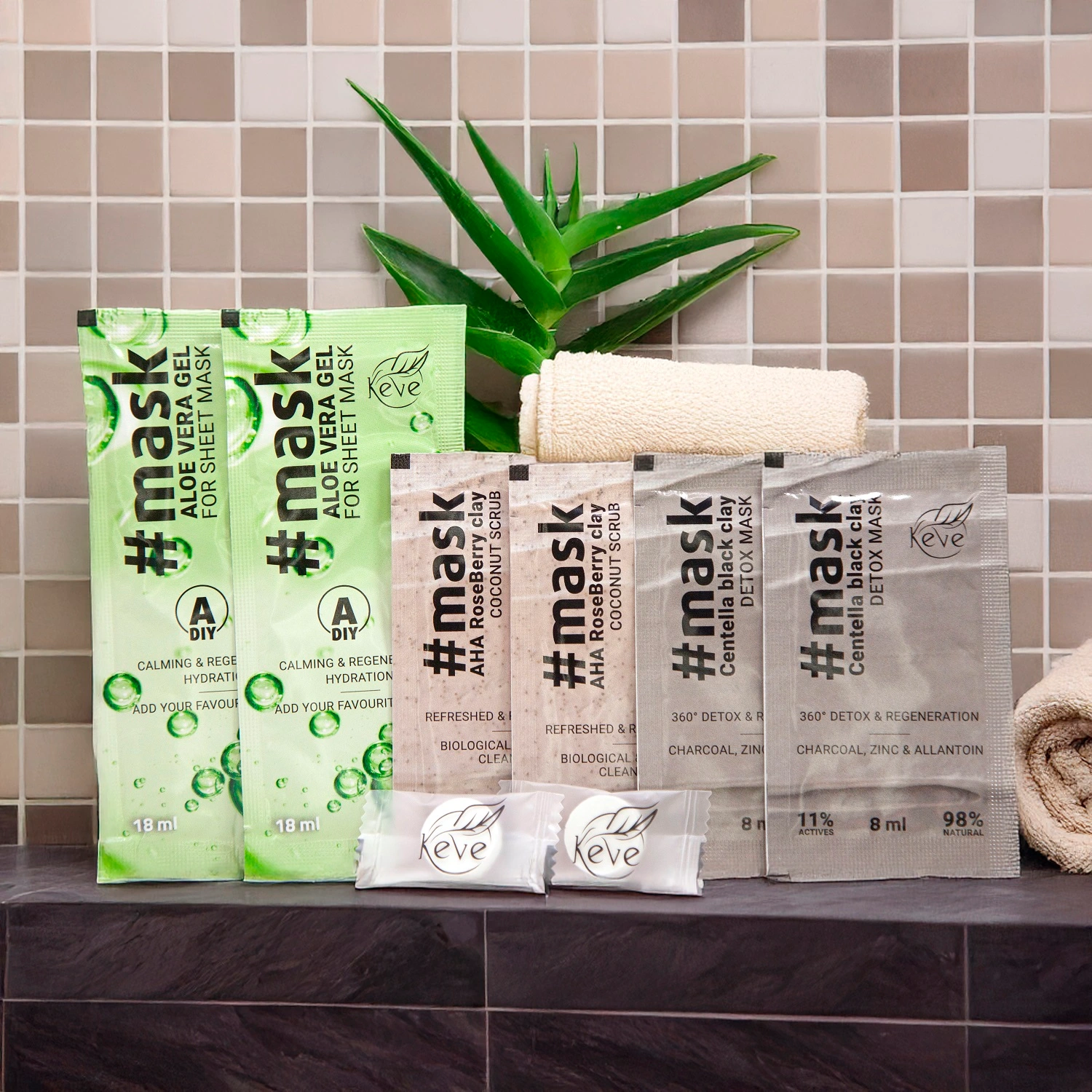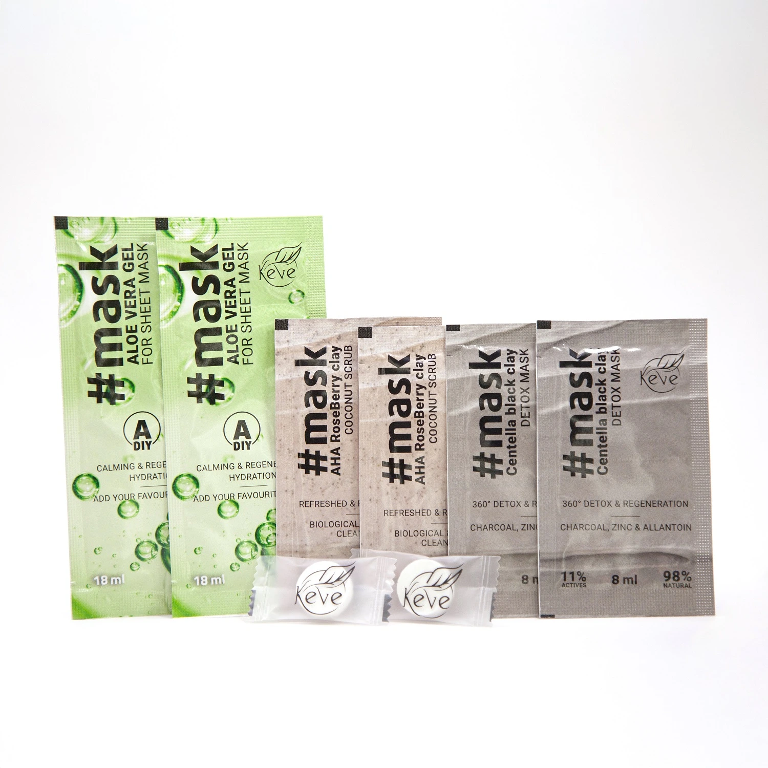 Aloe vera gél fátyolmaszk – Nyisd fel a KEVE fátyolmaszk gél tasakját, és keverj hozzá 3-5 cseppet kedvenc KEVE szérumodból vagy esszenciádból. Tedd a tasakba a kicsomagolt maszk tablettát, és hagyd benne, amíg teljesen magába szívja a formulát. Hajtogasd ki a maszkot, és gyengéden igazítsd el az arcodon, majd hagy hatni 10-15 percig. A maszk eltávolítása után maradó szérumot masszírozd be, és hagyd teljesen beszívódni.