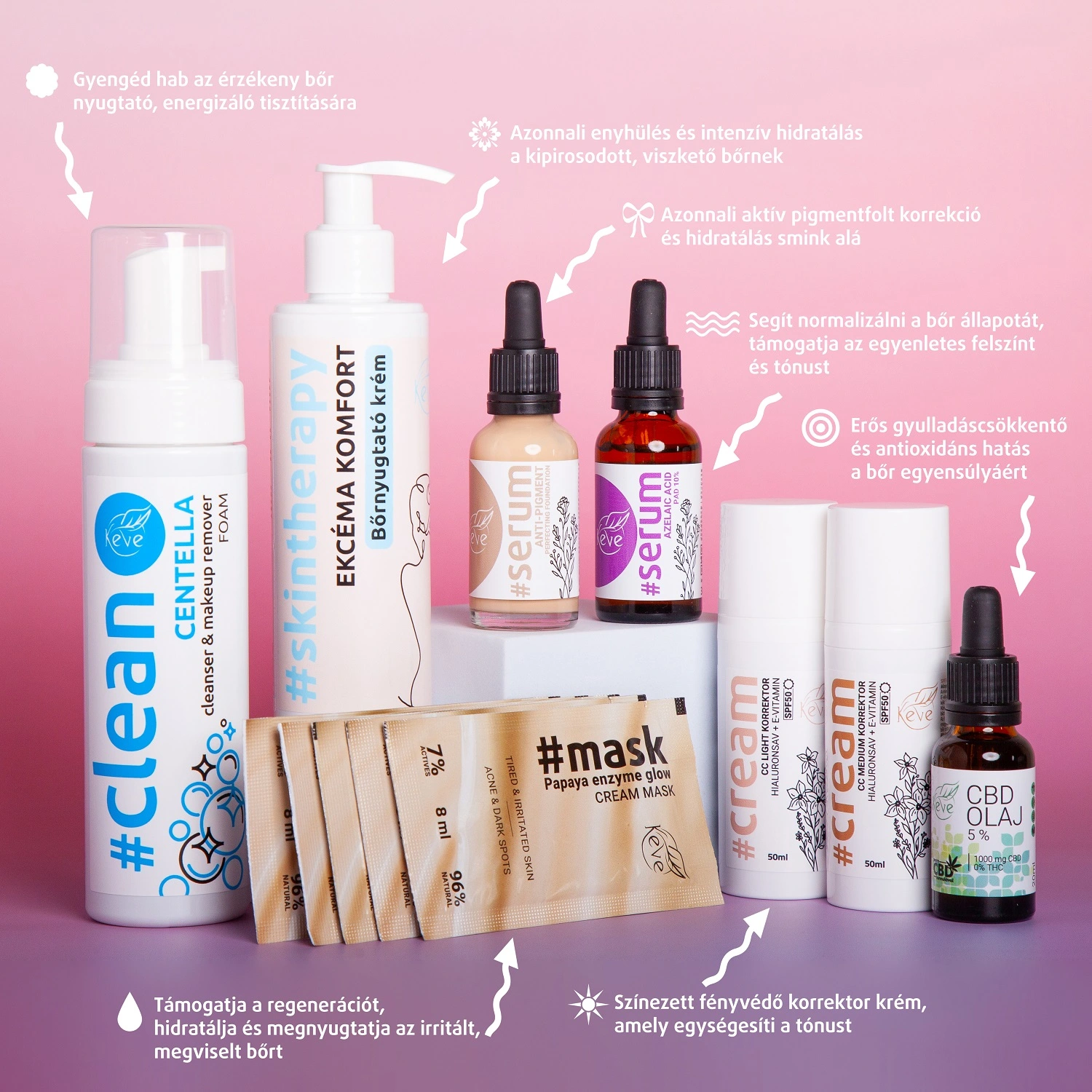 ✔ gyulladásos diszkomfort mérséklése – centella, E-vitamin, allantoin