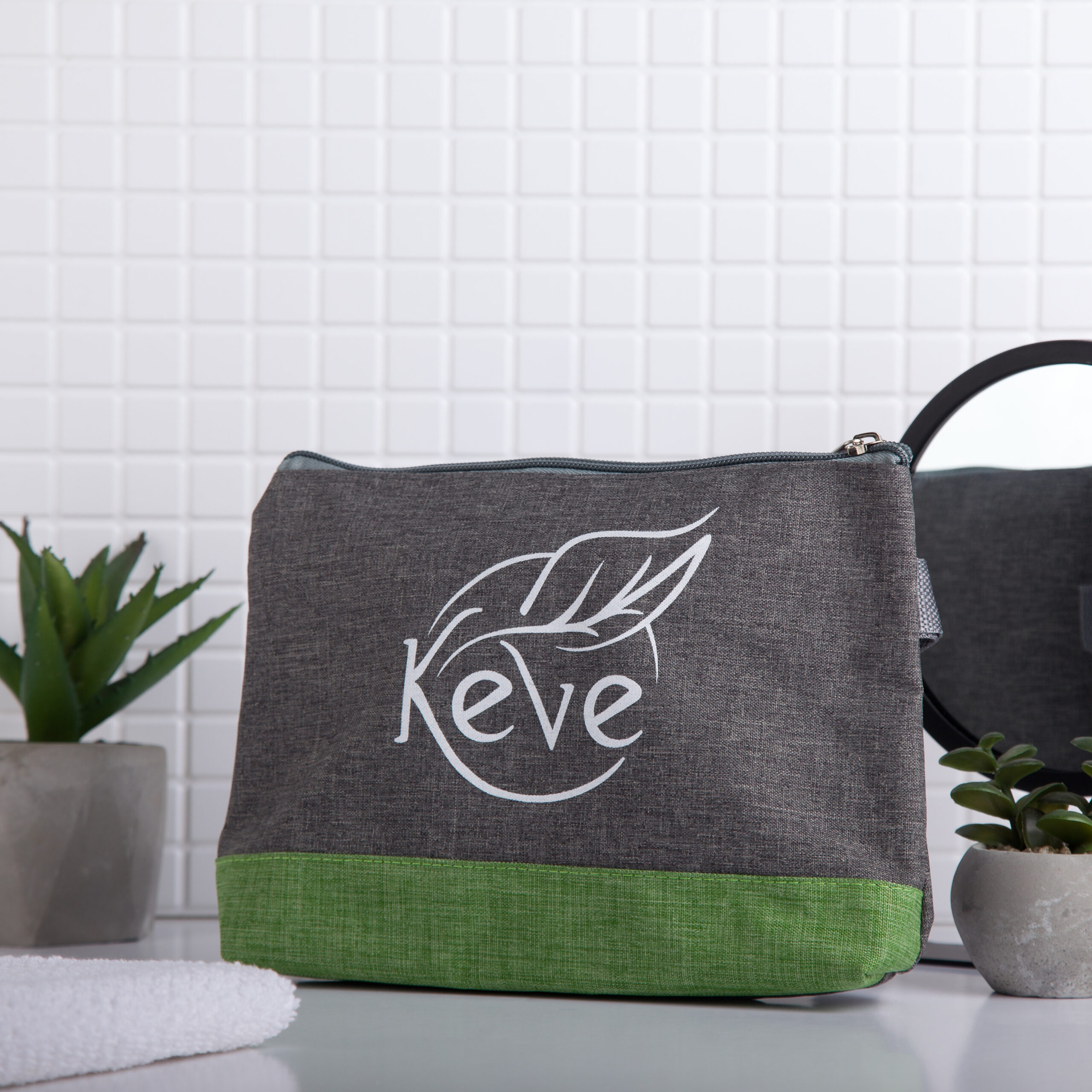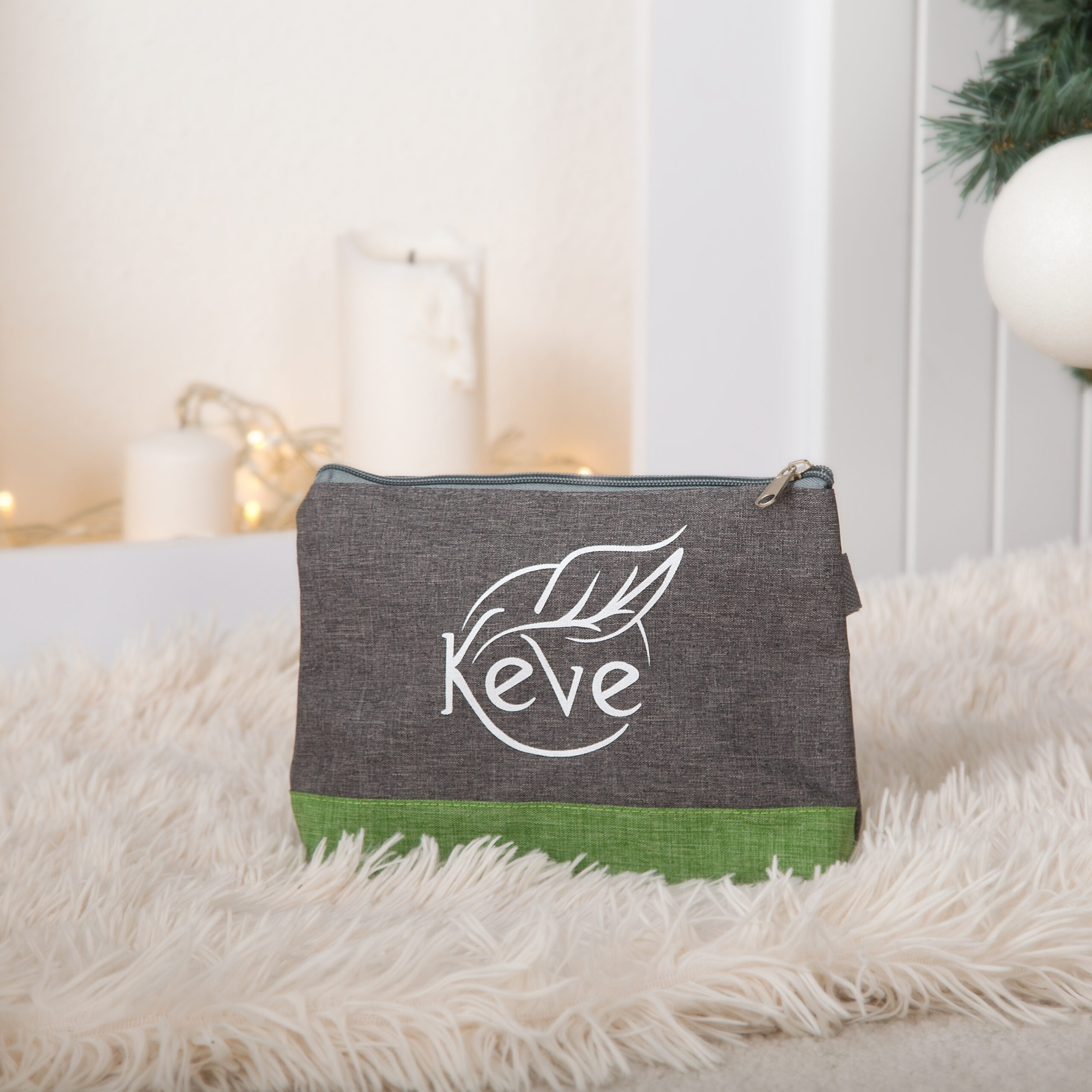 Pamut piperetáska szürke-zöld színben